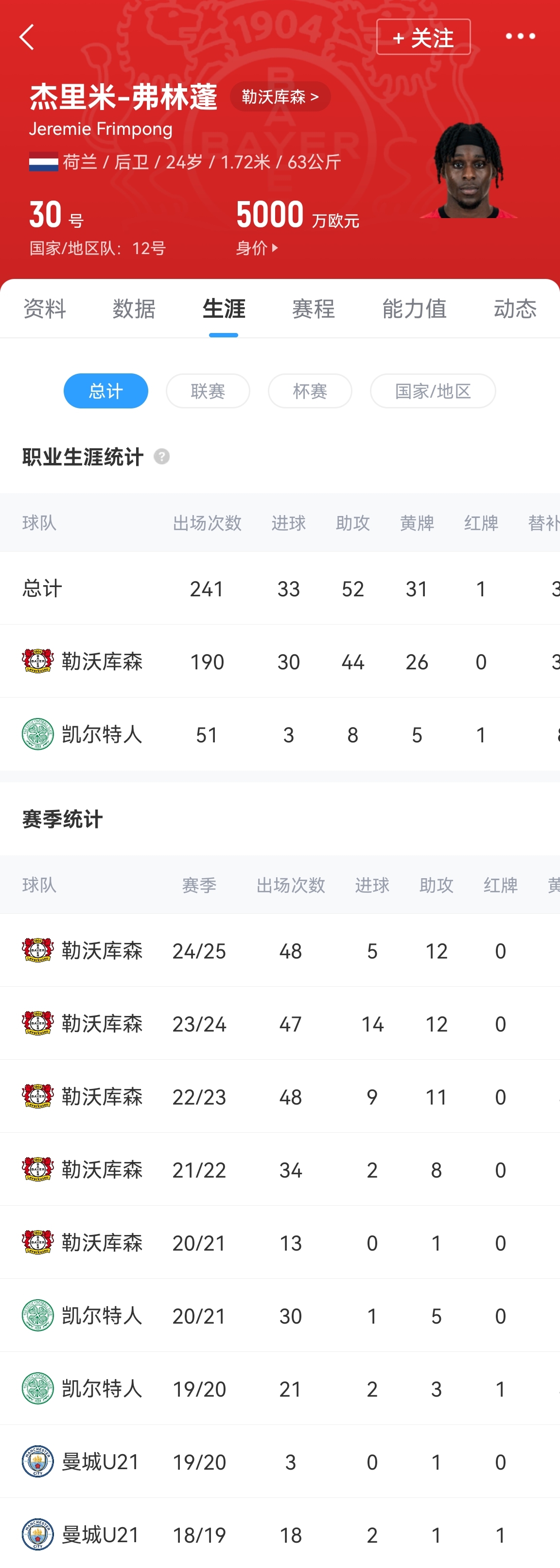 本赛季,弗林蓬各项赛事出场48次,打入5球11助攻。